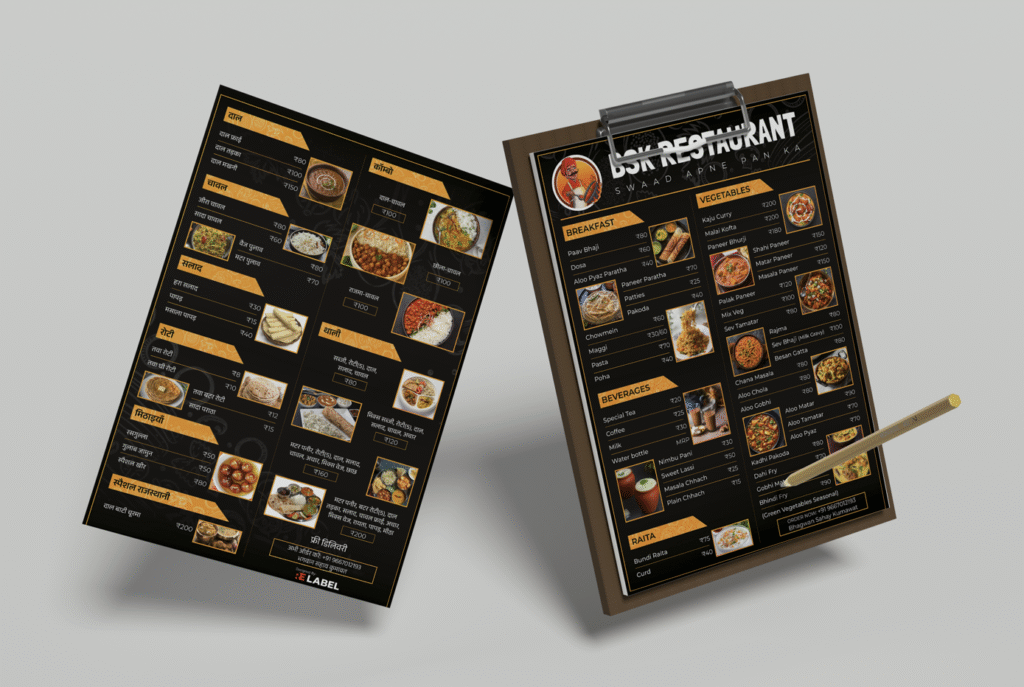 A menu is more than a list of dishes—it’s the prelude to an experience, the silent salesperson at every table, the tactile bridge between anticipation and indulgence. We design menu cards that don’t just inform; they entice, guide, and reflect the essence of your culinary vision. Whether it’s a fine-dining folio or a café’s quick-bite card, we balance appetite appeal with brand personality, ensuring every fold, font, and finish makes mouths water before the first order arrives.